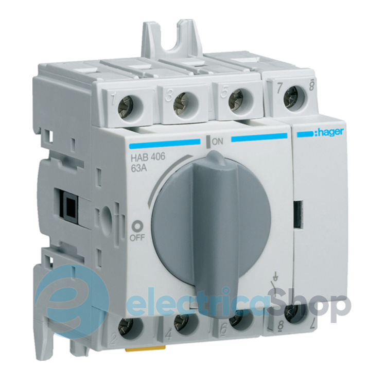 Рубильник 4-полюсный, модульный, с поворотной ручкой производства фирмы Hager (Франция).