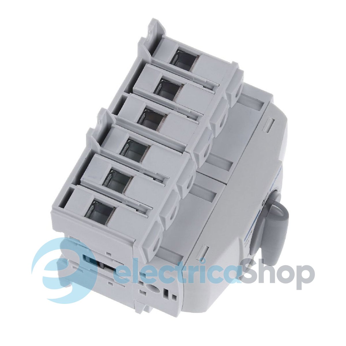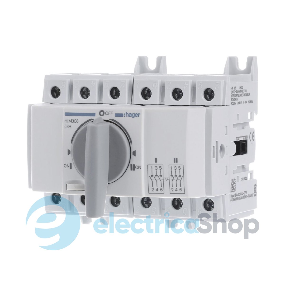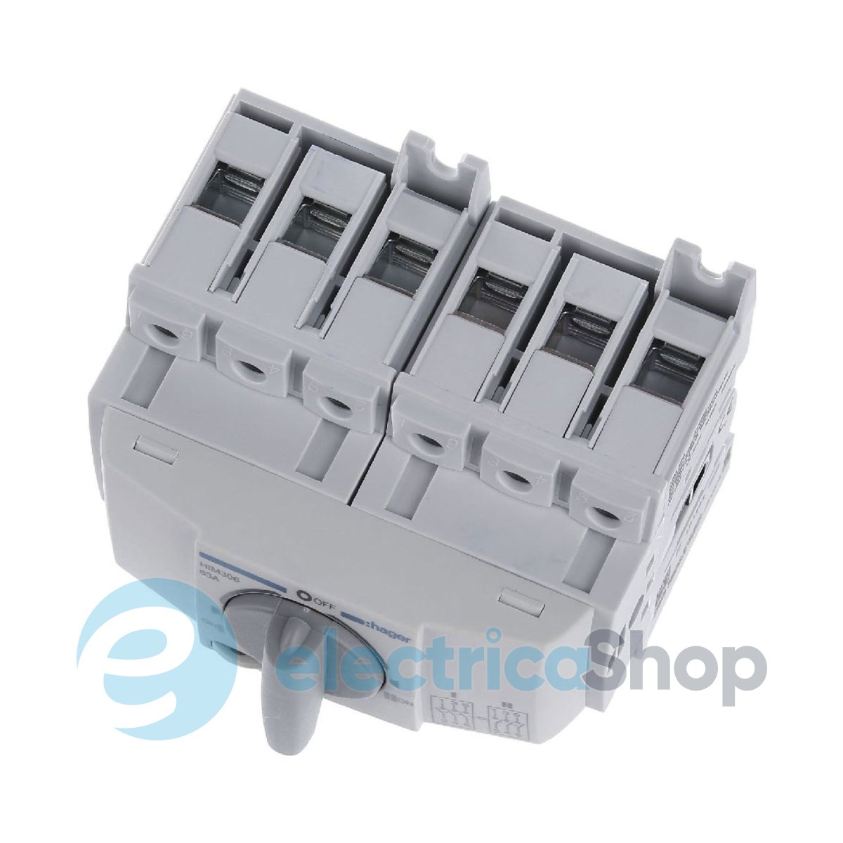 Рубильник 3-полюсный, реверсивный, модульный, с поворотной ручкой производства фирмы Hager (Франция).