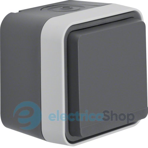 Электророзетка SCHUKO с откидной крышкой, для наружного монтажа.