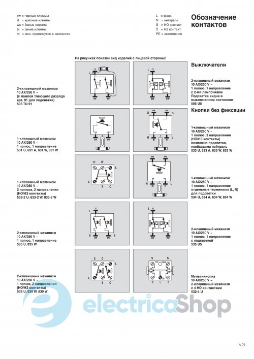 – Номинальный ток: 10 AX / 250 V~. Артикул: 533U