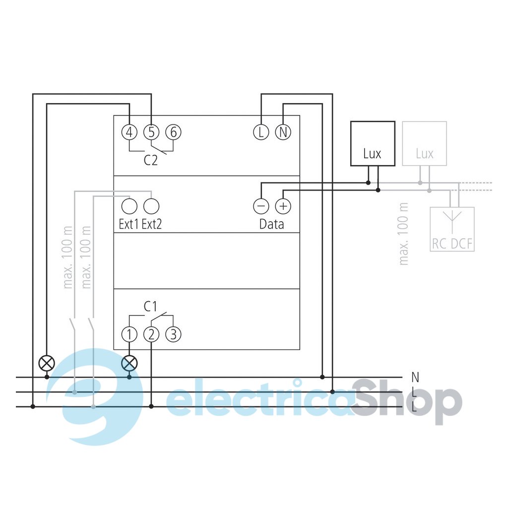 Макс. длина кабеля до датчика: 100 метров.Размеры реле Theben LUNA 122 top2 RC AL