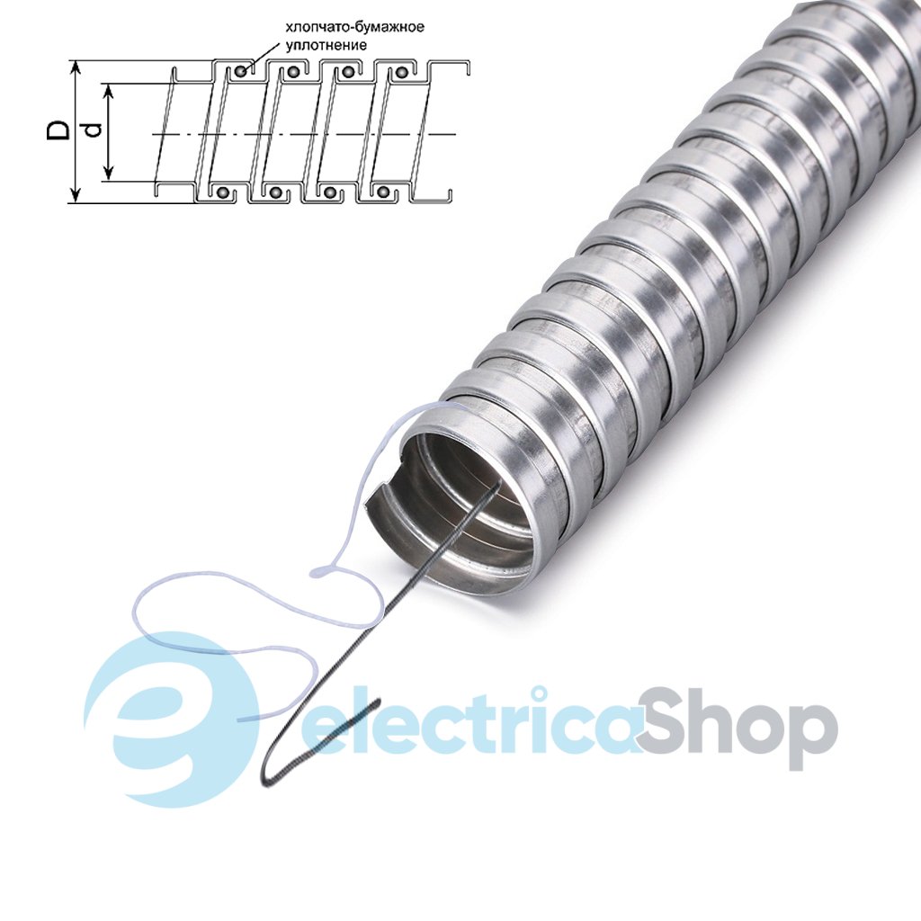 Рукав металлический негерметичный (металлорукав) РЗЦ-Х с протяжкой и хлопчатобумажным уплотнением используется для прокладки и предохранения проводов, кабелей и т.д.