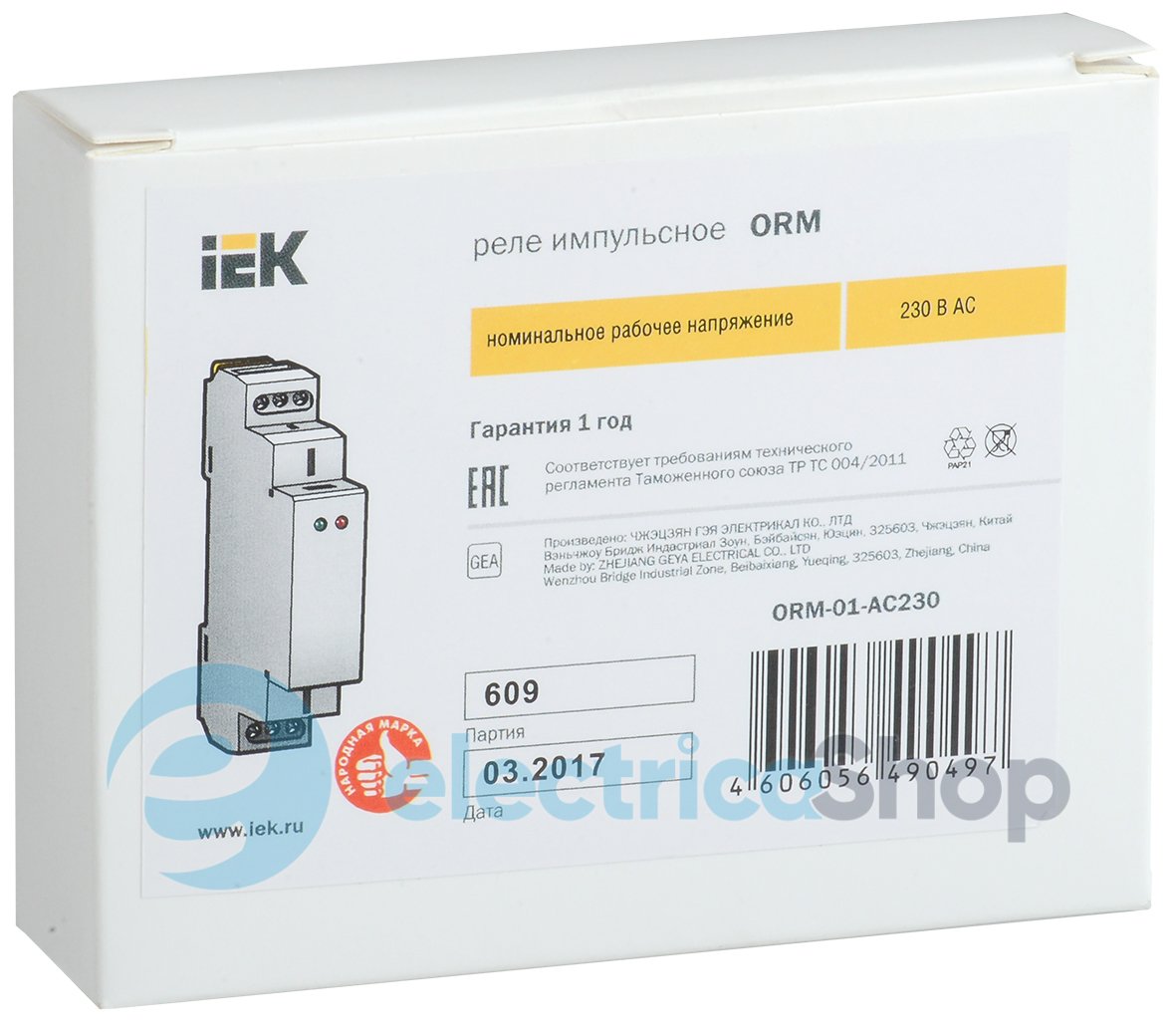 – Тип: Импульсное реле ORM. 1 конт. 230 В AC UEK