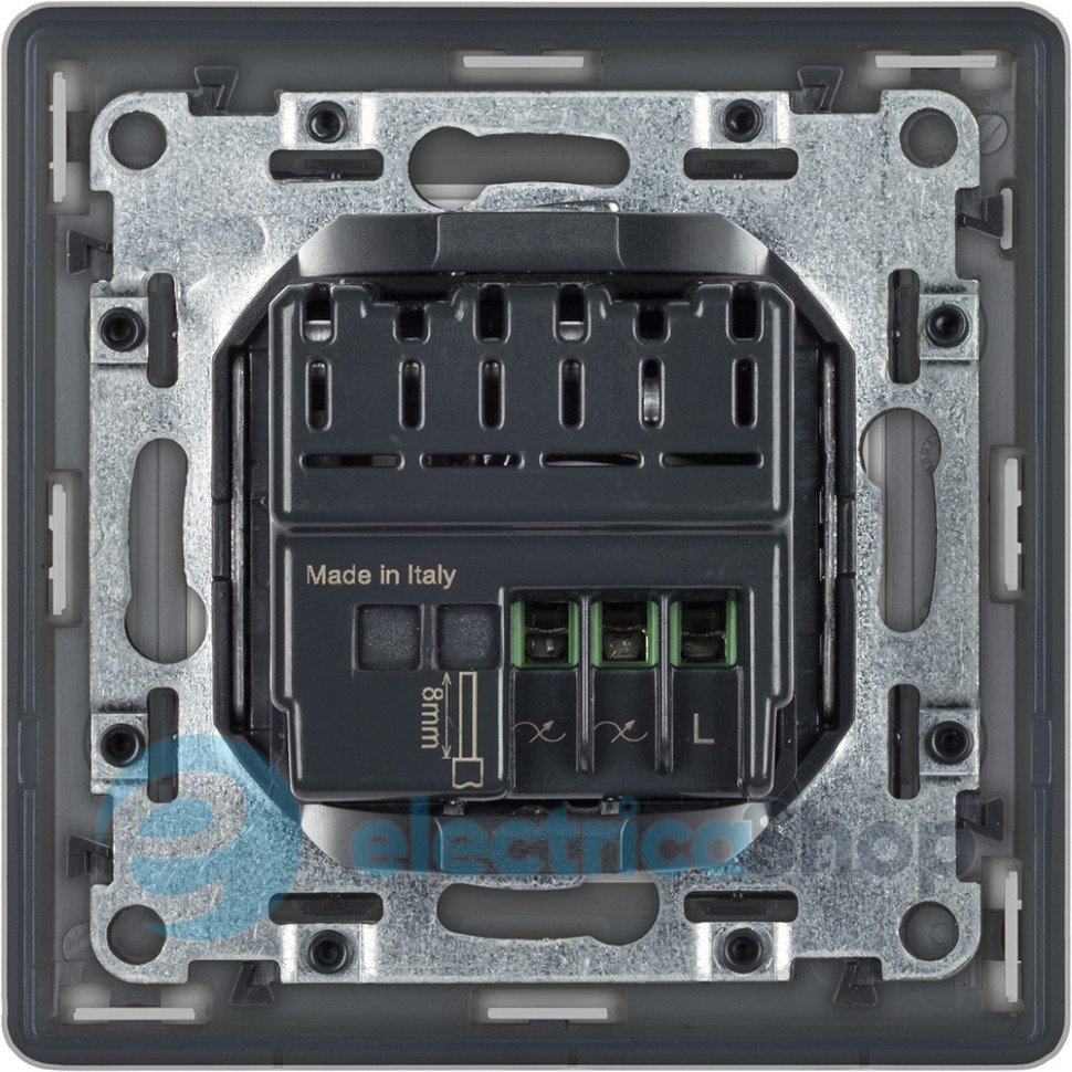 Поставляется с захватами, декоративной рамкой, суппортом, лицевой панелью и защитной крышкой. Крепление на винтах или захватах. Может управляться умными беспроводными выключателями.