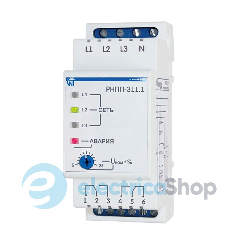 Трехфазное реле напряжения РНПП-311.1 (Новатек) предназначено для отключения нагрузки 400 В 50 Гц при: недопустимых колебаниях напряжения в сети с продолжительностью не менее 0,02 с.