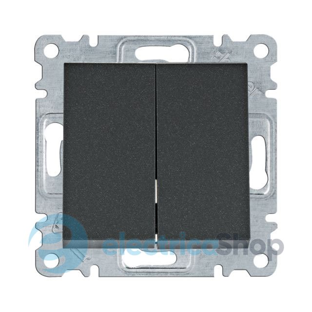 Универсальный (2-клавишный) выключатель из серии ЭУИ Lumina производства Hager, предназначен для включения/отключения двух источников света с одного места или более мест (проходная система).