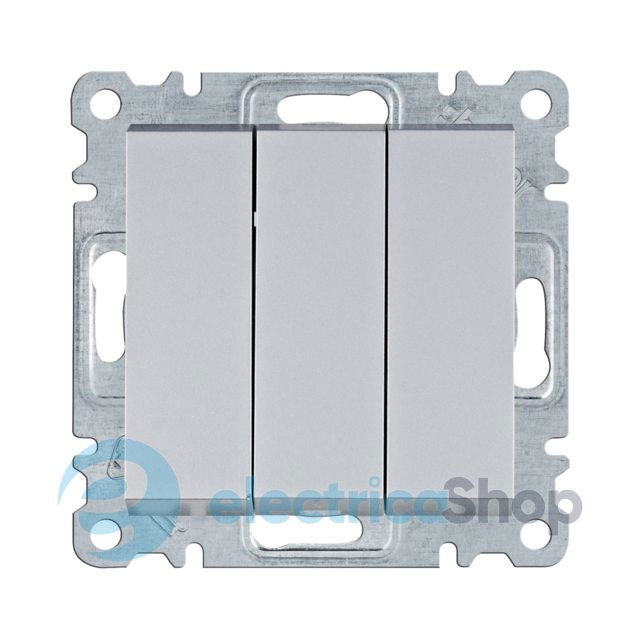Однополюсный (3-клавишный) выключатель из серии ЭУИ Lumina производства Hager, предназначен для включения/отключения двух трех источников света с одного места.