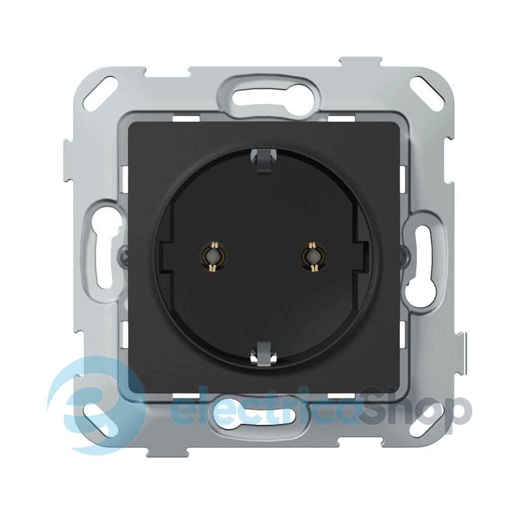 Розетка изготовлена ??в цвете антрацит, с использованием технологии Soft-Touch (Soft-Feel).