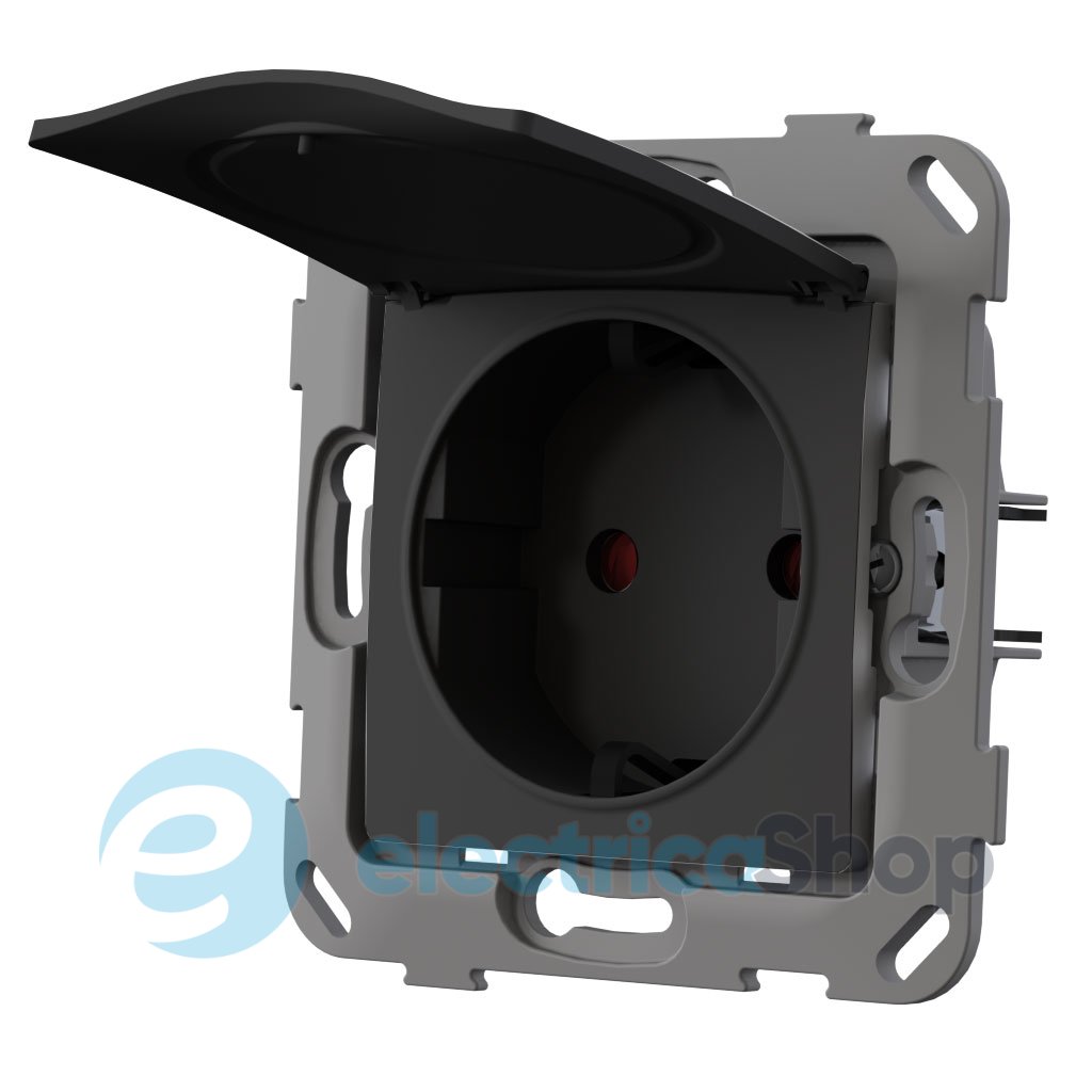 Розетка изготовлена ??в цвете антрацит, с использованием технологии Soft-Touch (Soft-Feel).