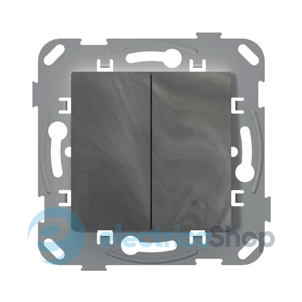 Тип: проходной двухклавишный переключатель (может использоваться как обычный 2-кл. выключатель, так и в проходной схеме где один и более источников света выключаются / отключаются с разных мест.).