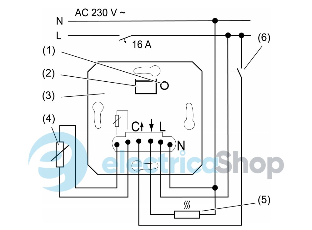Механизм комнатного регулятора температуры с возможностью подключения выносного датчика (выносной датчик арт.: FF 7.8).
