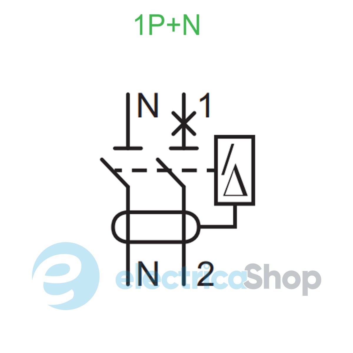 Дифференциальный автомат R9D55632 относится к типу защитных устройств с типом чувствительности А (реле чувствительно к переменному току и пульсирующему постоянному току).