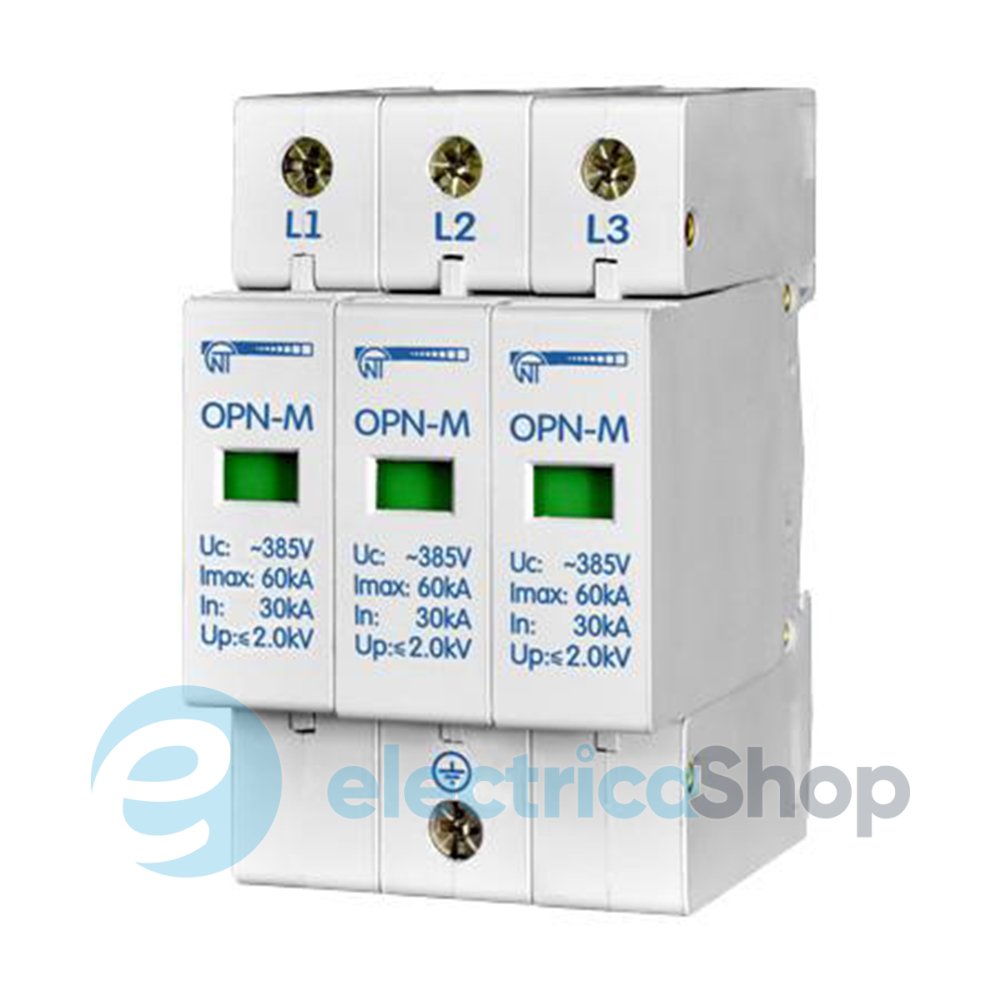 - OPN-M (3S) 30kA – Ограничитель перенапряжения 3 модуля 380В; In: 30kA