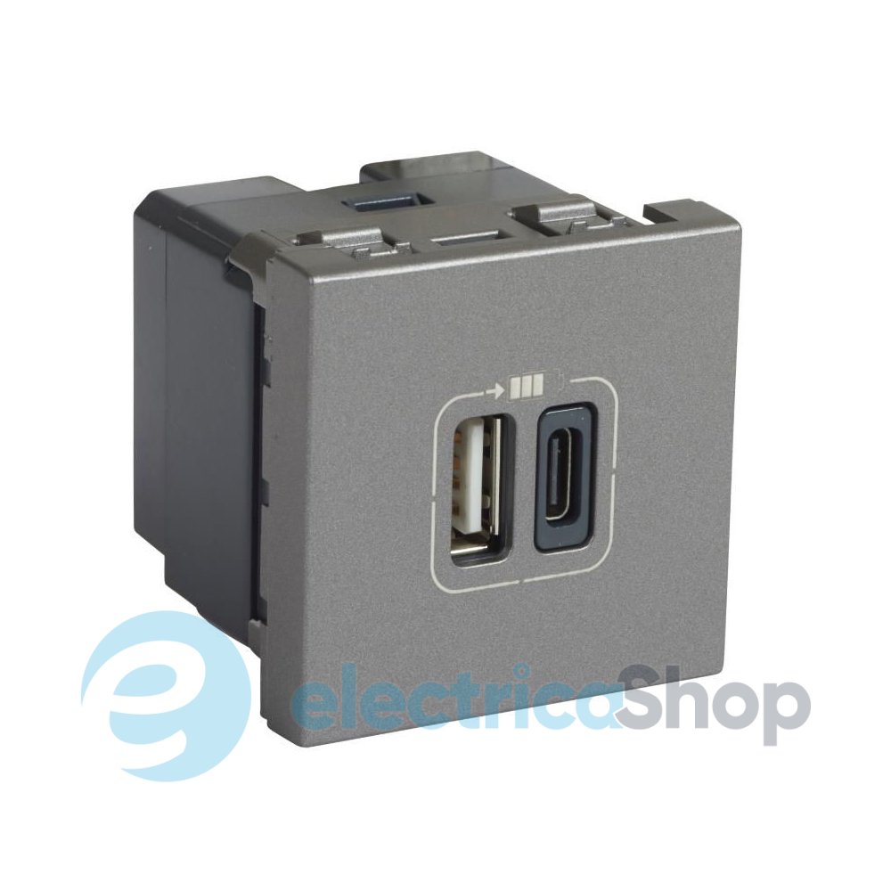 Розетка USB-C+USB-A 3,0A 15Вт 2 модуля MOSAIC 79392 цвет алюминий