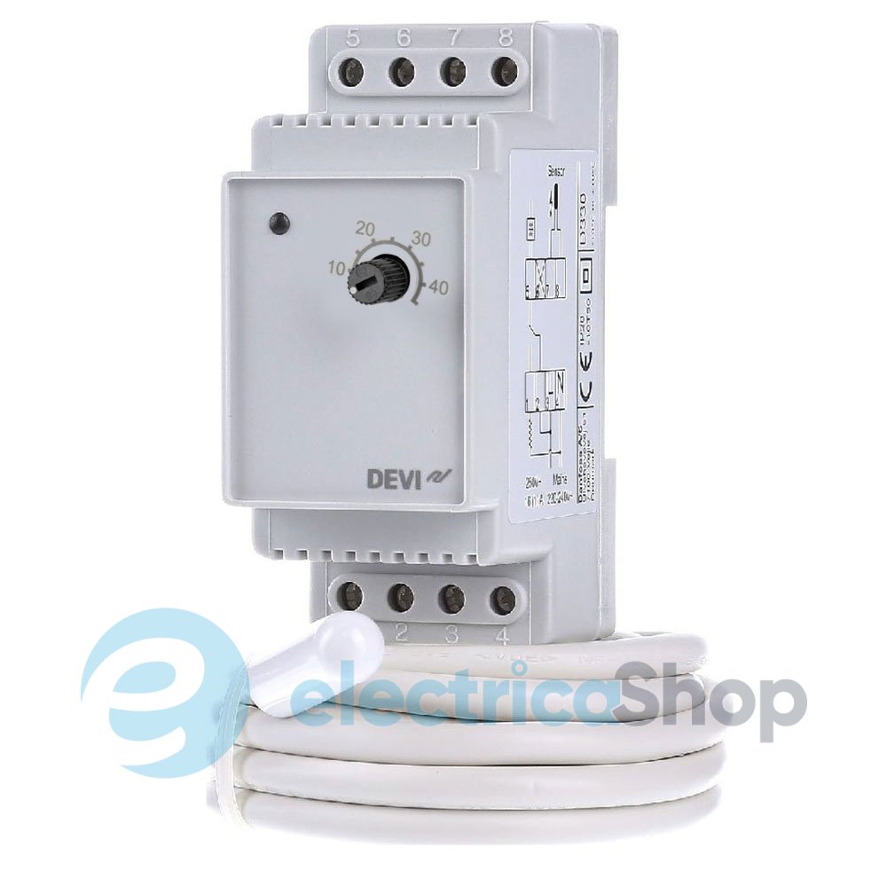 Электронный терморегулятор для крепления на DIN-рейку. Применяется для управления процессом обогрева помещений (по температуре пола или воздуха), охладительными установками, системами защиты от замерзания, системами стаивания снега и льда на крышах, водосточных желобах, трубах и т.п.Технические данные: