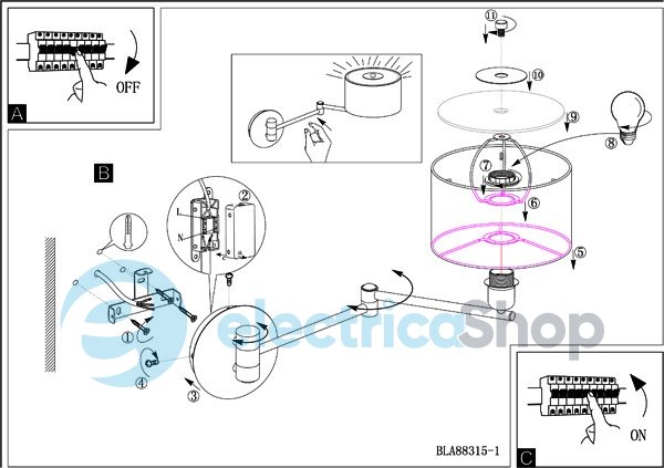 - Тип Бра: С абажуром, Настенные светильники