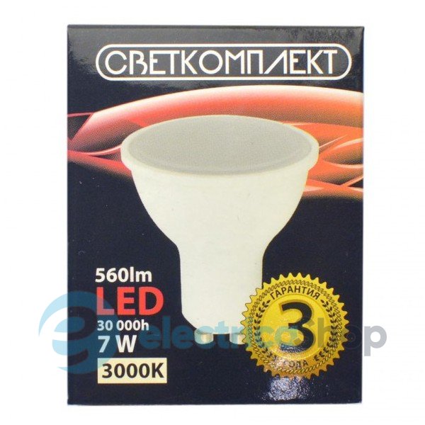 Описание led-лампы Светкомплект LED GU10 E 7W 3000K 220V (1055)