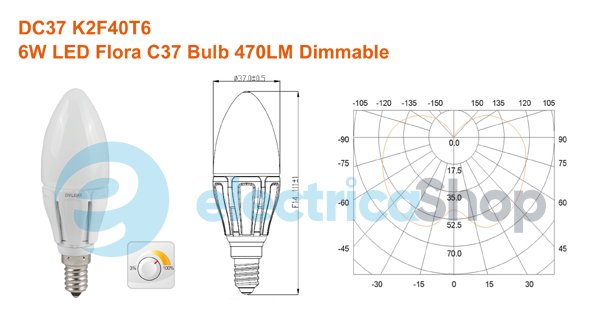 Лампа светодиодная DC37 K2F40T6 диммируемая