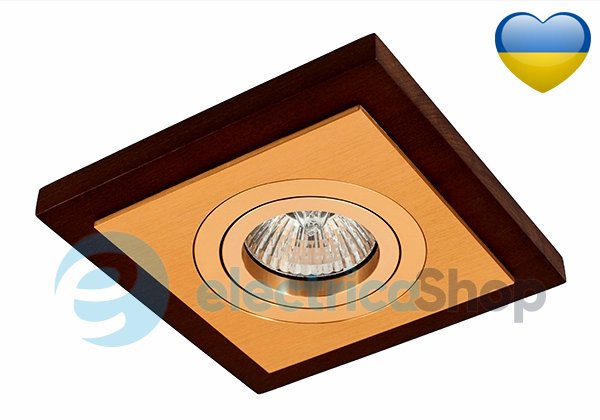 Деревянный точечный встроенный светильник ImperiumLight для потолков цвета "орех" с алюминиевой вставкой alu gold.
