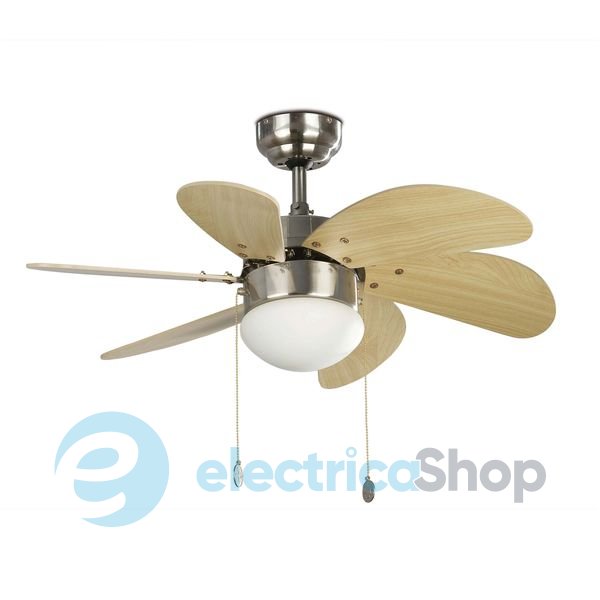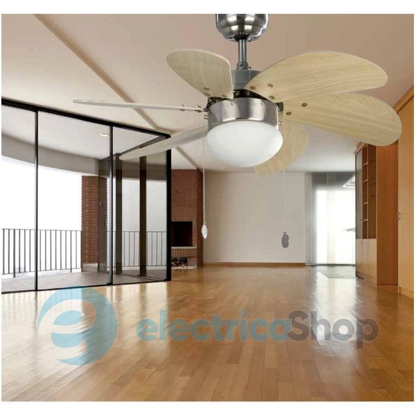 Потолочный вентилятор идеально подходит для комнат до 13m2. Двигатель изготовлен из стали, лопасти из МДФ, плафон из белого стекла. Одна лампочка Е14 40Вт не входит в комплект. Вентилятор имеет 3 регулируемых скорости с потреблением 29-37,5-46W и 100-160-220 оборотов в минуту. Этот современный вентилятор имеет два режима-зима, лето. Вес вентилятора - 5,67 кг. Гарантия на двигатель - 15 лет. Вентилятор можно устанавливать на прямой потолок, а также на свод, угол которого не превышает 30 °.