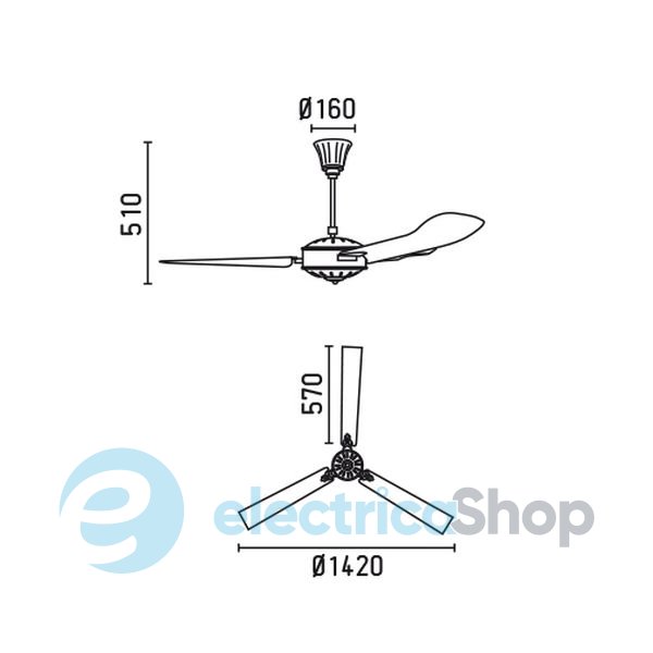 Потолочный вентилятор идеально подходит для комнат от 17,6m2. Двигатель изготовлен из алюминия, лопасти из МДФ. Вентилятор имеет 3 регулируемых скорости с потреблением 40-60-90W и 95-140-200 оборотов в минуту. Вес вентилятора - 9,54 кг. Гарантия на двигатель - 15 лет. Вентилятор можно устанавливать только на прямой потолок. Для удлинения вентилятора в комплект входят алюминивые основания на три длины (200-300-500мм).