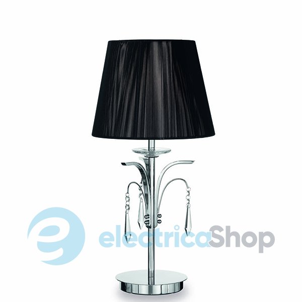 Настольная лампа Ideal Lux 26015 ACCADEMY прекрасно будет смотреться в современных интерьерах. Основание выполнено из хромированного металла, плафоны из пластика, обтянутого черными нитями.