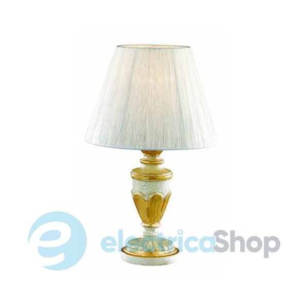 Настольная лампа Ideal Lux 52687 FLORA прекрасно подойдет для интерьеров в стиле "прованс". Основание выполнено из смеси смол, некоторые элементы украшены вручную фольгой с эффектом "состаренное золото". Плафон тканевый цвета "слоновая кость".