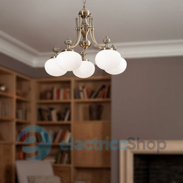 Люстра 92108 Eglo FERNANDEZ из традиционной коллекции Эгло будет отлично смотреться в помещении, оформленном в классическом стиле. Арматура осветительного прибора изготовлена из стали цвета бронзы, плафоны - из опалового стекла белого цвета.