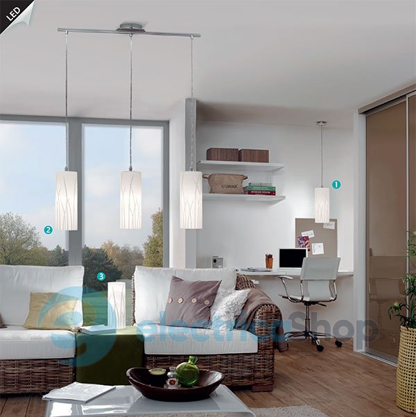 Люстра 93123 Eglo RIVATO 1 будет хорошо смотреться в современных интерьерах. Арматура изготовлена из хромированного металла, плафоны - из белого стекла с декором. LED-лампочка в наличии.