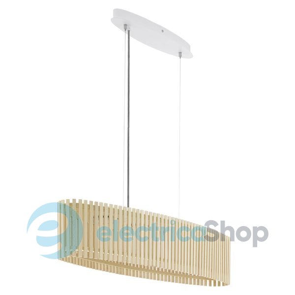 Люстра-подвес Eglo 39023 ROVERATO - хорошее решение для интерьере в стиле модерн. Корпус осветительного прибора изготовлен из стали и окрашен в белый цвет, а плафон - из дерева и пластика цвета натурального дерева. Класс защиты - 2. Цветопередача - >80 Ra. В комплекте с люстрой идет лампочка. Средняя продолжительность работы лампочки - 15 000 часов.