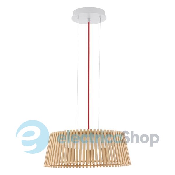 Люстра-подвес Eglo 94018 ROVERATO - хорошее решение для интерьере в стиле модерн. Корпус осветительного прибора изготовлен из стали и окрашен в белый цвет, а плафон - из дерева и пластика натурального цвета. Цвет шнура - красный. Класс защиты - 1. В комплекте с люстрой идет LED-лампочка. Средняя продолжительность работы лампочки - 25 000 часов.