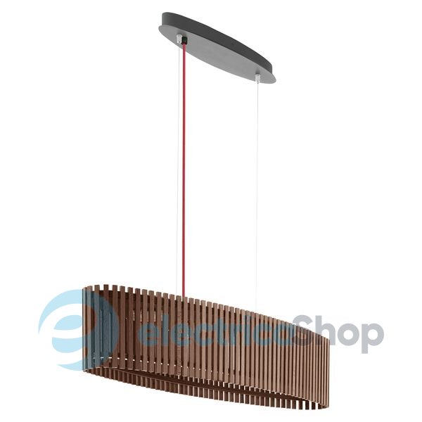 Люстра-подвес Eglo 94024 ROVERATO - хорошее решение для интерьере в стиле модерн. Корпус осветительного прибора изготовлен из стали и окрашен в черный цвет, а плафон - из дерева и пластика цвета "орех". Цвет шнура - красный. Класс защиты - 2. Цветопередача - >80 Ra. В комплекте с люстрой идет лампочка. Средняя продолжительность работы лампочки - 15 000 часов.
