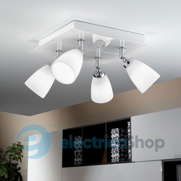 Светильник потолочный Eglo 91779 KATORO из стильной коллекции Эгло хорошо подойдет для интерьеров в современном стиле. Корпус спота изготовлен из стали и стекла, а плафоны - из корродированного стекла белого цвета. Лампочка в наличии. Есть функция диммера.
