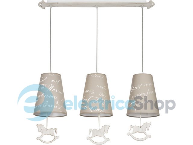 Люстра предназначена для детской комнаты. Плафоны высотой 24 см, выполнены из ткани.