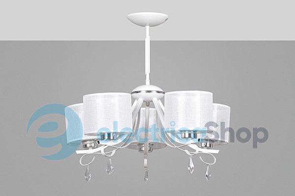 Люстра EMIBIG ULTRA 886/5 WHITE будет отлично смотреться в современных интерьерах, подчеркнет индивидуальность вашего дома. Арматура изготовлена из металла, абажуры текстильные белого цвета.