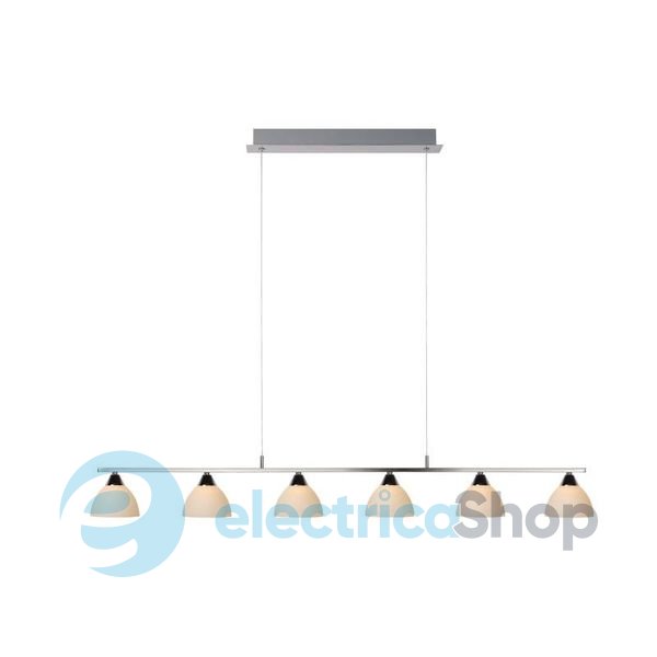 Подвес 18405/26/12 Lucide хорошо впишется в интерьер в стиле "модерн" (в современном стиле). Арматура подвеса выполнена из металла, а плафоны - из стекла. Высота осветительного прибора регулируется. Цветовая температура - 3000К (теплый белый), световой поток - 6х310 lm. Такая люстра будет хорошо смотреться над столом в столовой или в кухне.