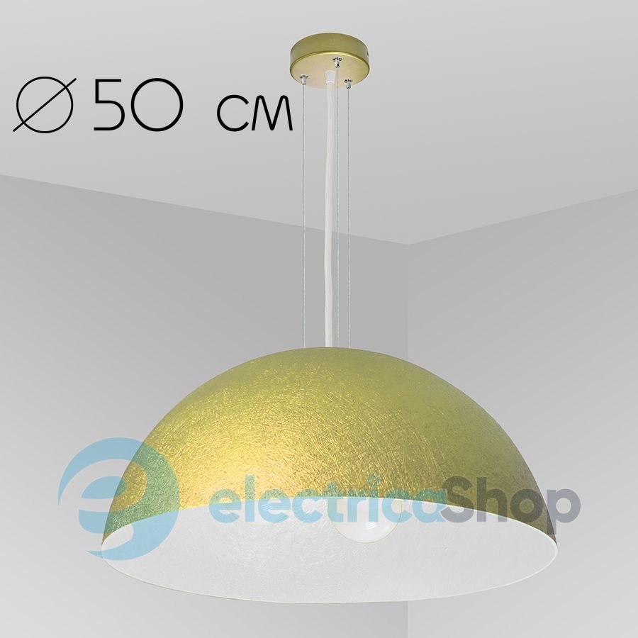 Подвесной светильник ImperiumLight 07350.12.01 D.50 см, золото (металлик) / белый очень хорошо будет смотреться в кафе, барах, ресторанах, в офисных помещениях, а также подчеркнет индивидуальность вашего дома. Лаконичный дизайн и модное цветовое решение дает возможность использовать светильник в современных интерьерах. Диаметр подвеса - 50 см, высота плафона - 25 см, длина светильника - 150 см.