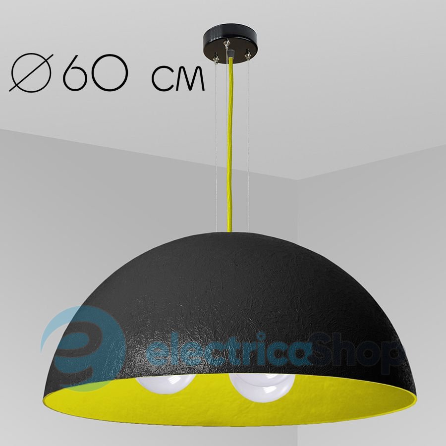 Подвесной светильник ImperiumLight 07360.05.19 D.60 см, черный / желтый очень хорошо будет смотреться в кафе, барах, ресторанах, в офисных помещениях, а также подчеркнет индивидуальность вашего дома. Лаконичный дизайн и модное цветовое решение дает возможность использовать светильник в современных интерьерах Диаметр подвеса - 60 см, высота плафона - 30 см, длина светильника - 155 см.