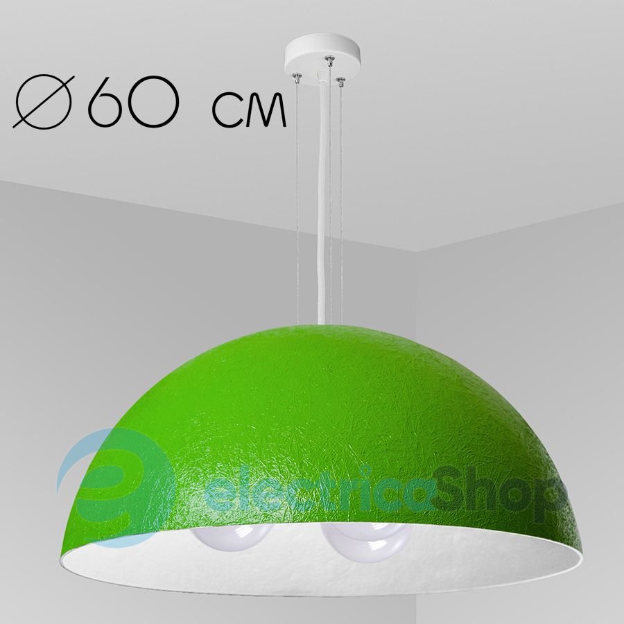 Подвесной светильник ImperiumLight 07360.41.01 D.60 см, салатовый / белый очень хорошо будет смотреться в кафе, барах, ресторанах, в офисных помещениях, а также подчеркнет индивидуальность вашего дома. Лаконичный дизайн и модное цветовое решение дает возможность использовать светильник в современных интерьерах Диаметр подвеса - 60 см, высота плафона - 30 см, длина светильника - 155 см.