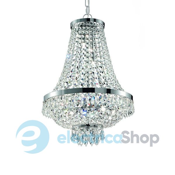 Люстра Ideal Lux 33532 CAESAR будет отлично смотреться в интерьере, оформленном в классическом стиле. Арматура выполнена из хромированного металла, декоративные элементы - из 8-угольных хрусталин фацетной огранки с заостренными наконечниками.