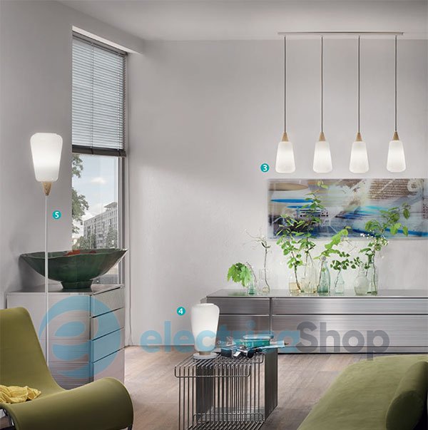 Люстра 93688 Eglo PENTONE из стильной коллекции Eglo будет хорошо смотреться в помещении, оформленном в современном стиле. Арматура подвеса изготовлена из стали и дерева, а плафоны - из опалового ярко белого стекла.