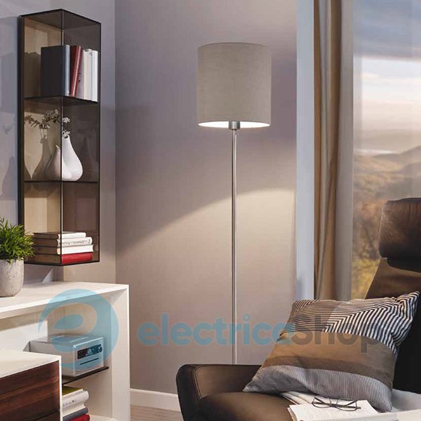 Торшер 95166 Eglo PASTERI будет отлично смотреться в помещениях, оформленных в современном стиле. Арматура осветительного прибора выполнена из металла, плафон - из ткани.
