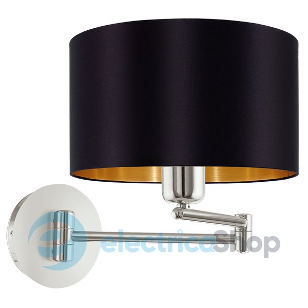 Бра 95054 Eglo MASERLO будет отлично смотреться в помещениях, оформленных в современном стиле. Арматура осветительного прибора выполнена из металла, плафон - из ткани черного и золотистого цветов.