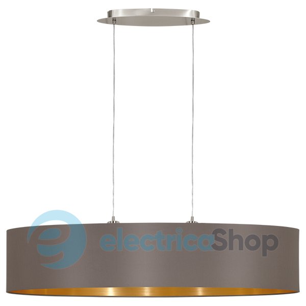 Люстра 31619 Eglo MASERLO из стильной текстильной коллекции Эгло будет отлично смотреться в помещениях, оформленных в современном стиле. Арматура осветительного прибора выполнена из металла, плафон - из ткани (цвета "капучино" снаружи и золотистого внутри).