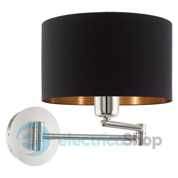 Бра 95059 Eglo PASTERI будет отлично смотреться в помещениях, оформленных в современном стиле. Арматура осветительного прибора выполнена из металла, плафон - из ткани черного и медного цветов.