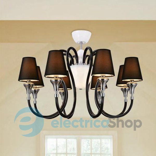 Люстра MC2070-8BL Zuma CHANDELIER прекрасно будет смотреться в гостиной или спальне. Основание выполнено из металла, цвет- черный, хром и белый. Плафон тканевый.