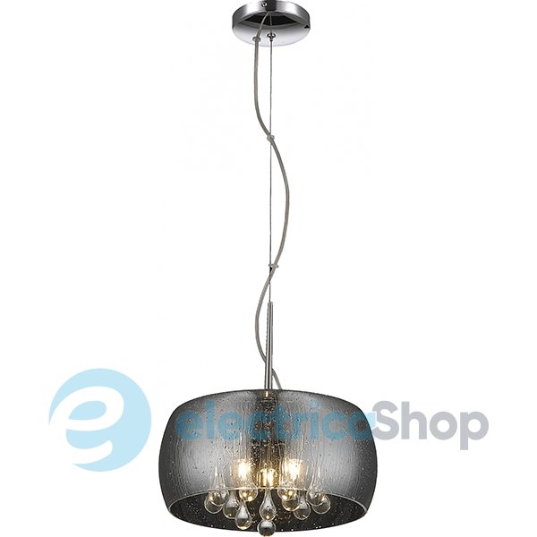 Люстра P0076-03E-F4K9 Zuma CRYSTAL прекрасно будет смотреться в гостиной или спальне. Основание выполнено из металла, цвет- хром. Плафон из дымчатого стекла. Подвески хрустальные.