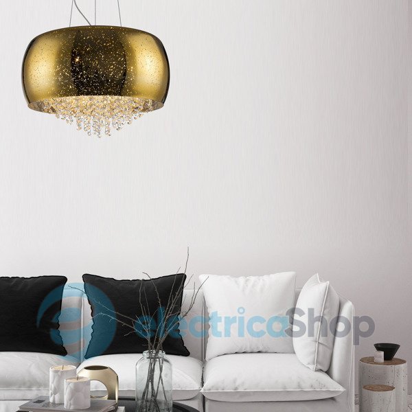 Люстра Zuma Line VISTA GOLD P0076-05K-F4GQ будет прекрасно смотреться в гостиной или спальне. Основание выполнено из металла, золотистый плафон – из стекла. Хрустальные подвески дополняют композицию.
