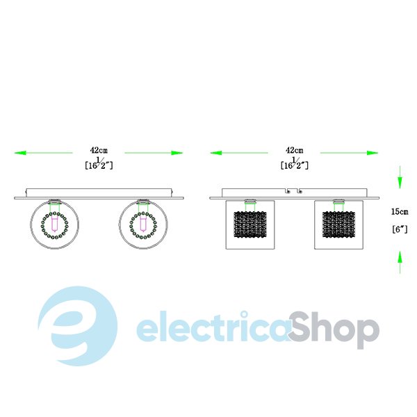 - Цвет плафонов: Прозрачный