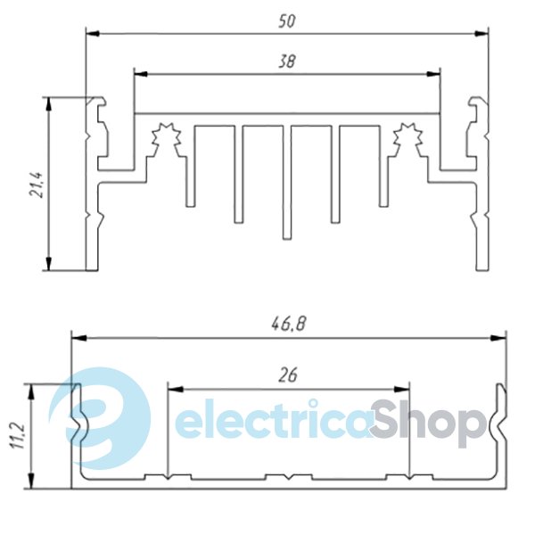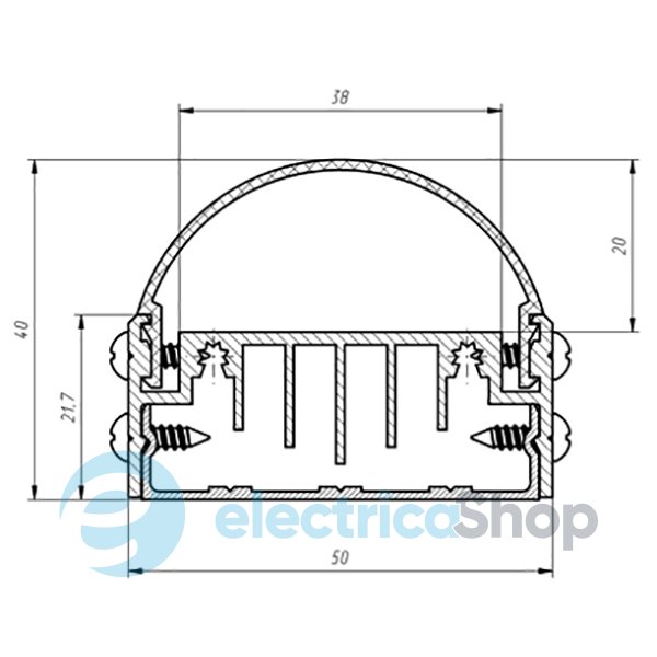Анодированный алюминиевый профиль ЛН 50 с повышенным теплоотводом предназначен для светодиодного освещения внутри и снаружи помещений.